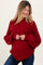 Burgundy Mixed Chunky Cable Knit Mock Neck Maternity Sweater