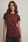Burgundy Ribbed Short Sleeve Curved Hem Top