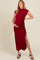 Burgundy Ruched Mock Neck Maternity Slit Midi Dress