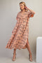 Camel Button Pleated Front Square Neck Ruffle Tiered Maternity Maxi Dress