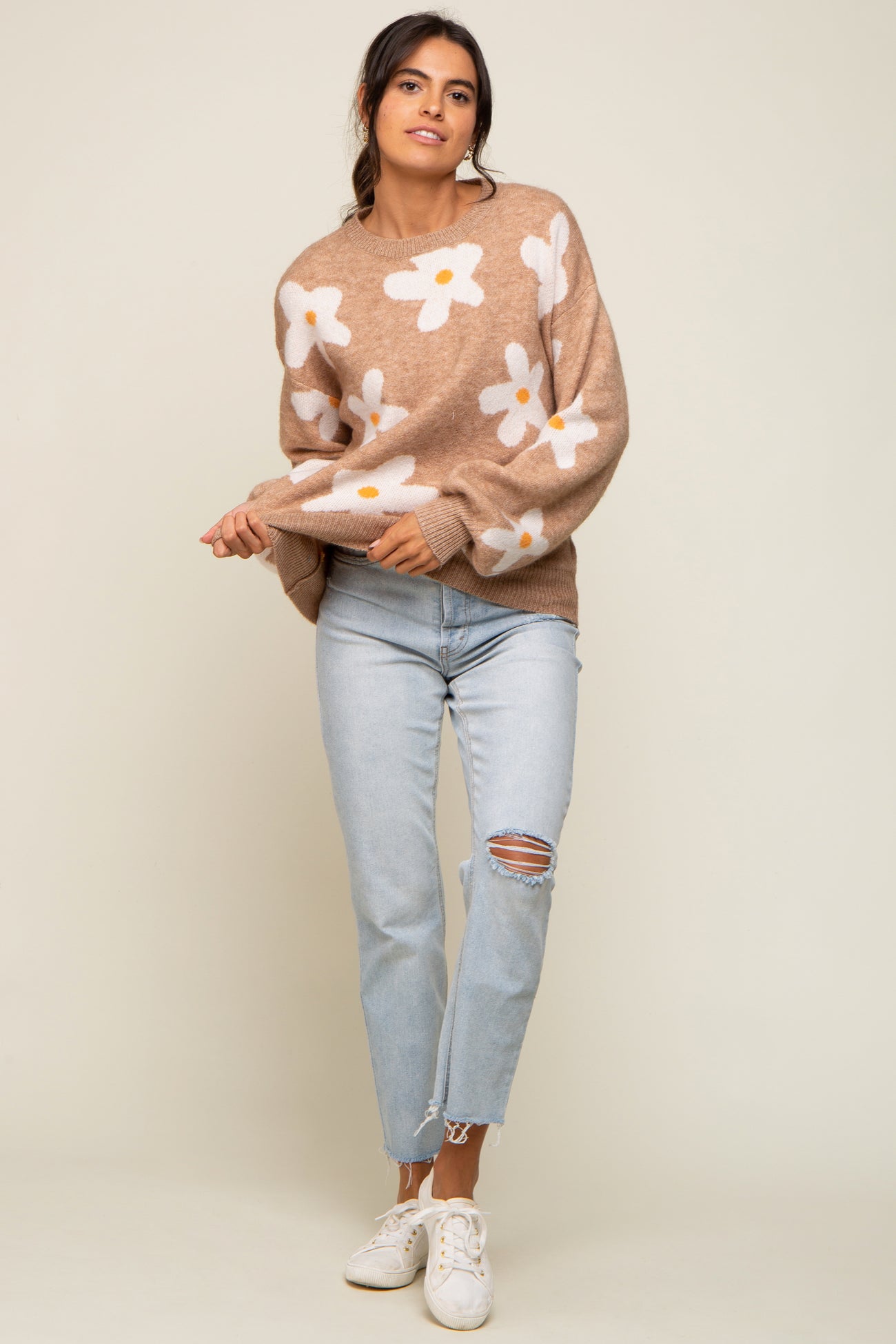 Camel Daisy Soft Brushed Knit Sweater