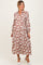 Camel Floral Button Down Long Sleeve Maternity Midi Dress