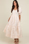 Embrace comfort and style with our Camel Floral Print Ruffle Hem Maternity Maxi Dress. Featuring a delicate floral pattern on a warm camel background, this dress is designed to flatter your growing bump with a comfortable empire waist and flowy silhouette. The square neckline and puff sleeves add a romantic touch, while the ruffle hem creates effortless movement. Crafted from lightweight, breathable fabric, it's perfect for casual outings or special occasions. Pair with sandals or wedges for an easy, chic maternity look you'll love throughout your pregnancy.