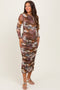 Camel Floral Tiered Puff Sleeve Maternity Midi Dress
