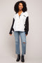 A soft ribbed boucle knit maternity sweater featuring a turtleneck and long sleeves.