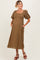 Camel Ribbed Puff Sleeve Tie Back Maternity Midi Dress