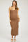 Camel Ribbed Sleeveless Side Slit Maternity Dress