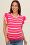 Camel Ruffle Sleeve Ribbed Maternity Top