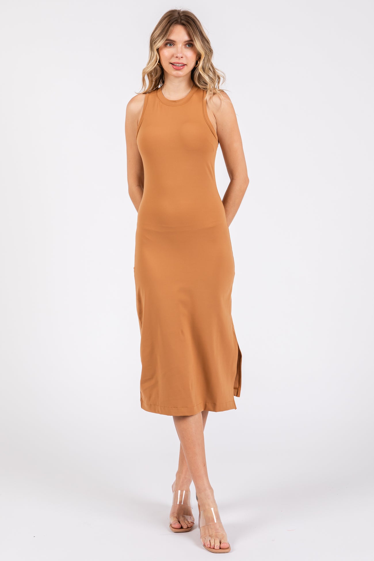 Camel Sleeveless Racerback Bodycon Maternity Dress
