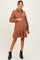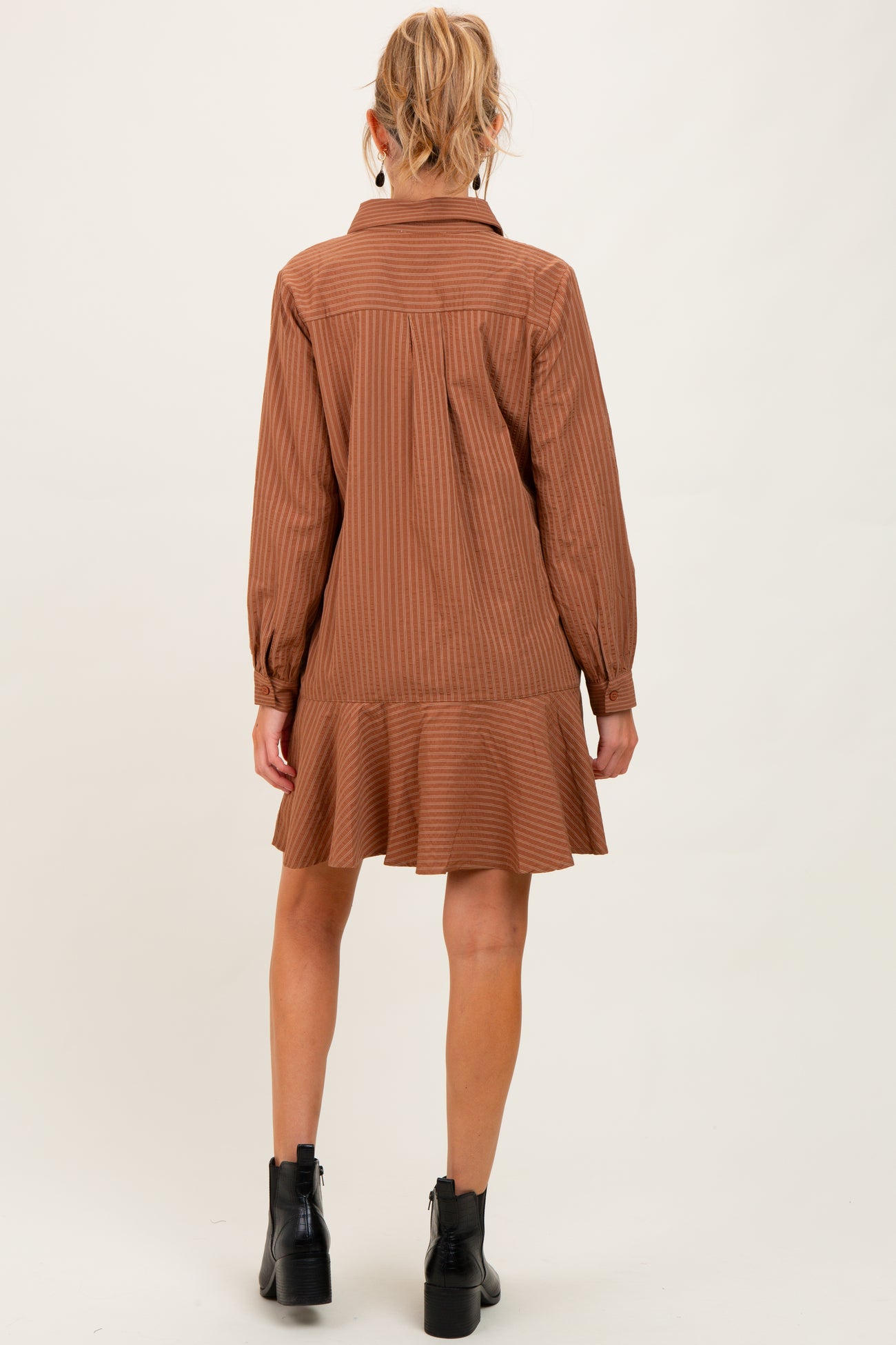 Camel Striped Long Sleeve Drop Waist Maternity Polo Dress