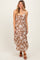 Camel Tropical Floral Front Cinch Tie Midi Dress