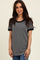 Charcoal/Black Ribbed Short Contrast Sleeve Top