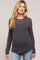 A soft chenille, open knit maternity sweater. Features a ribbed rounded neckline, long sleeves, and a ribbed hem.