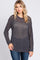 A soft chenille, open knit sweater. Features a ribbed rounded neckline, long sleeves, and a ribbed hem.