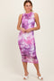 Charcoal Ribbed Fitted Side Slit Maternity Midi Dress
