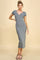 Charcoal Short Sleeve Side Button Ribbed Midi Dress
