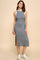 Charcoal/Soft White High Neck Ribbed Sleeveless Midi Dress