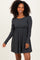 Charcoal Solid Ribbed Long Sleeve Crewneck Shirring Mini Dress