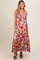 Coral Floral Smocked Shoulder Tie Maternity Maxi Dress