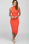 Coral Ribbed Mock Neck Maternity Dress