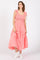 Coral Smocked Sleeveless Drawstring Shoulder Tiered Midi Dress