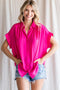 A crepe knit maternity top featuring a v-neckline and short dolman sleeves.