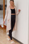 A solid hued cardigan featuring a button front closure, long sleeves, two pockets and hi-low hem.