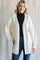 A solid chunky knit cardigan with an open front and puff sleeves.