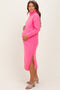 Cream Floral Button Front Waist Tie Maternity Midi Dress