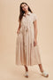 Cream Floral Shoulder Tie Button Down Midi Dress