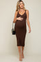 A solid knit fitted maternity midi dress featuring a fold-over turtleneck.
