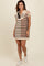 Cream Knit Striped Colorblock Collared Zip Up Mini Dress