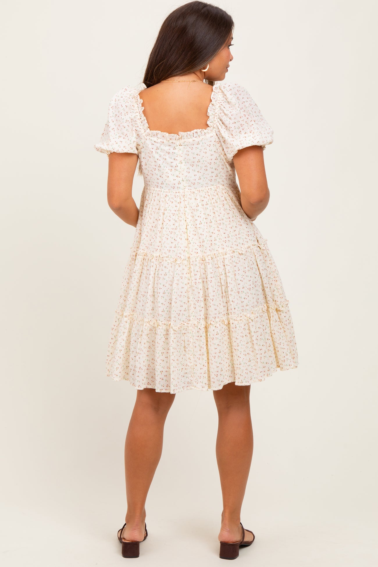 Cream Printed Button Up Ruffle Tiered Maternity Dress