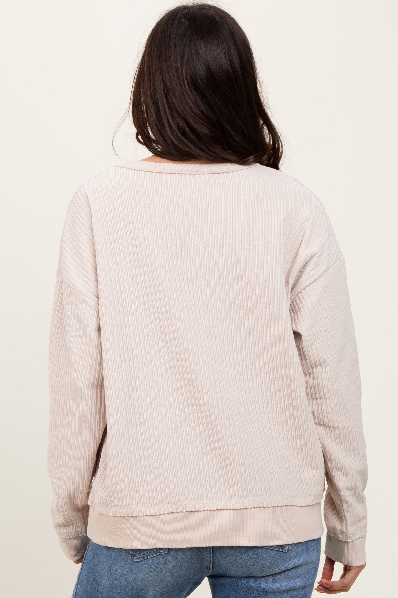 Cream Ribbed Brushed Knit Pullover Top