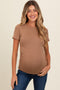 Cream Ruched Micro-Rib Maternity Top