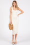 A solid hued maternity dress featuring adjustable ruffle shoulder straps, allover pleating, a back zipper closure and a sweetheart neckline.