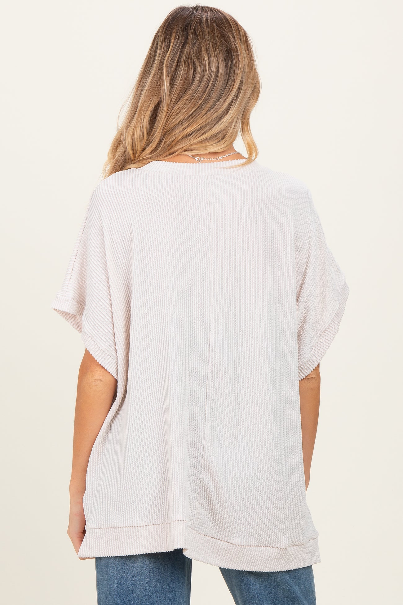 Cream Solid Ribbed Short Sleeve Oversized Maternity Tunic Top