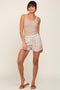 A lightweight short with a smocked elastic waistband and drawstring. Pockets.