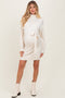 Cream Turtleneck Belted Mini Sweater Dress