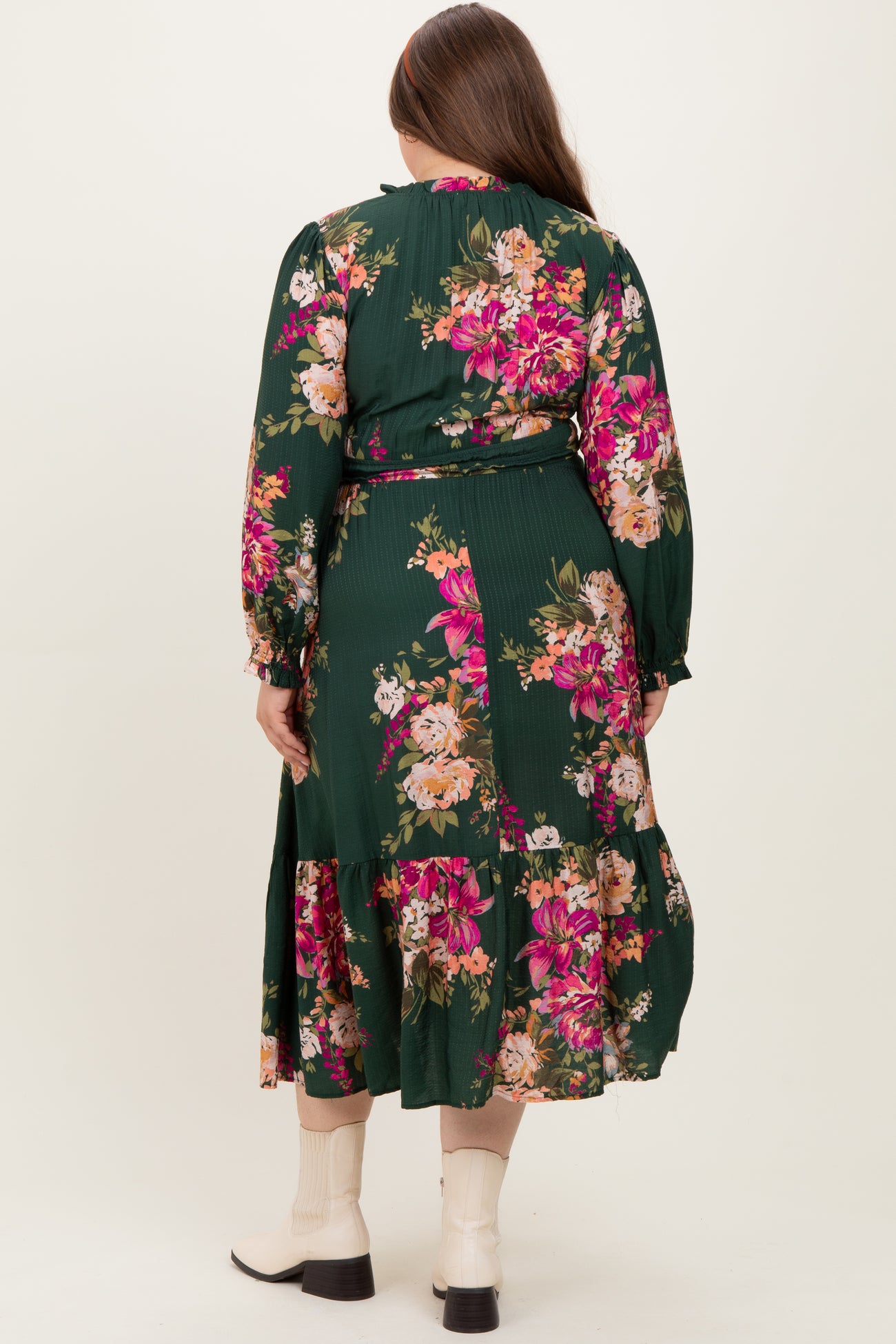 Forest Green Floral Long Sleeve Maternity Plus Midi Dress