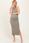 Embrace elegance and comfort with our Forest Green Mock Neck Side Slit Maternity Midi Dress. Designed to flatter your growing bump, this sleeveless dress features a sophisticated mock neck and a figure-hugging ribbed knit fabric that stretches beautifully throughout your pregnancy. The side slit adds a touch of allure and ease of movement, making it perfect for any occasion—from casual outings to special events. Crafted with soft, breathable material, this midi dress keeps you comfortable and stylish all day long. Pair it with your favorite heels or flats for a chic, effortless look. Available in multiple sizes to grow with you.