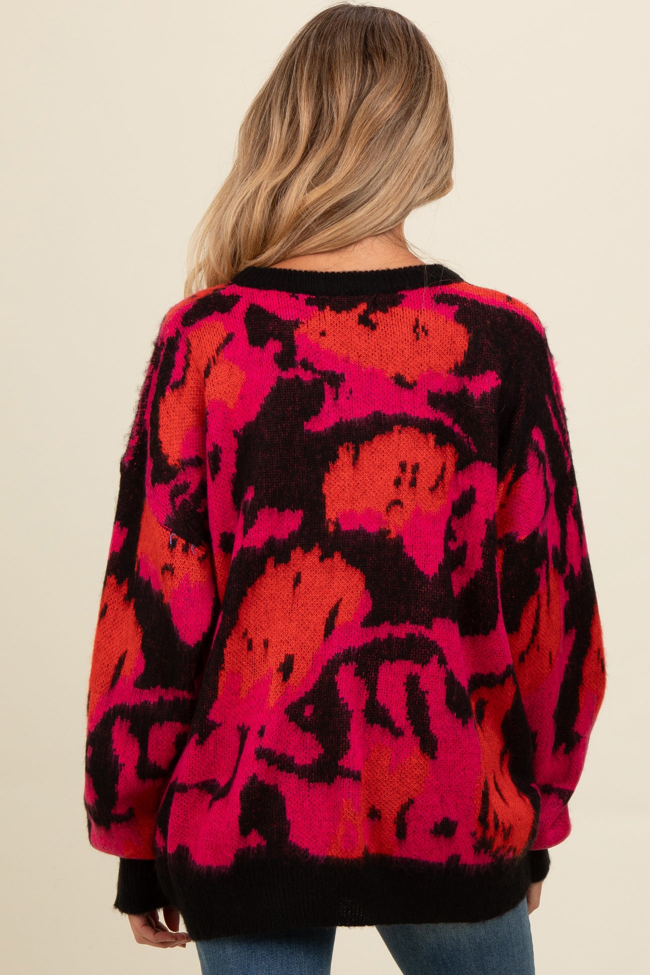 Fuchsia Abstract Fuzzy Knit Maternity Sweater
