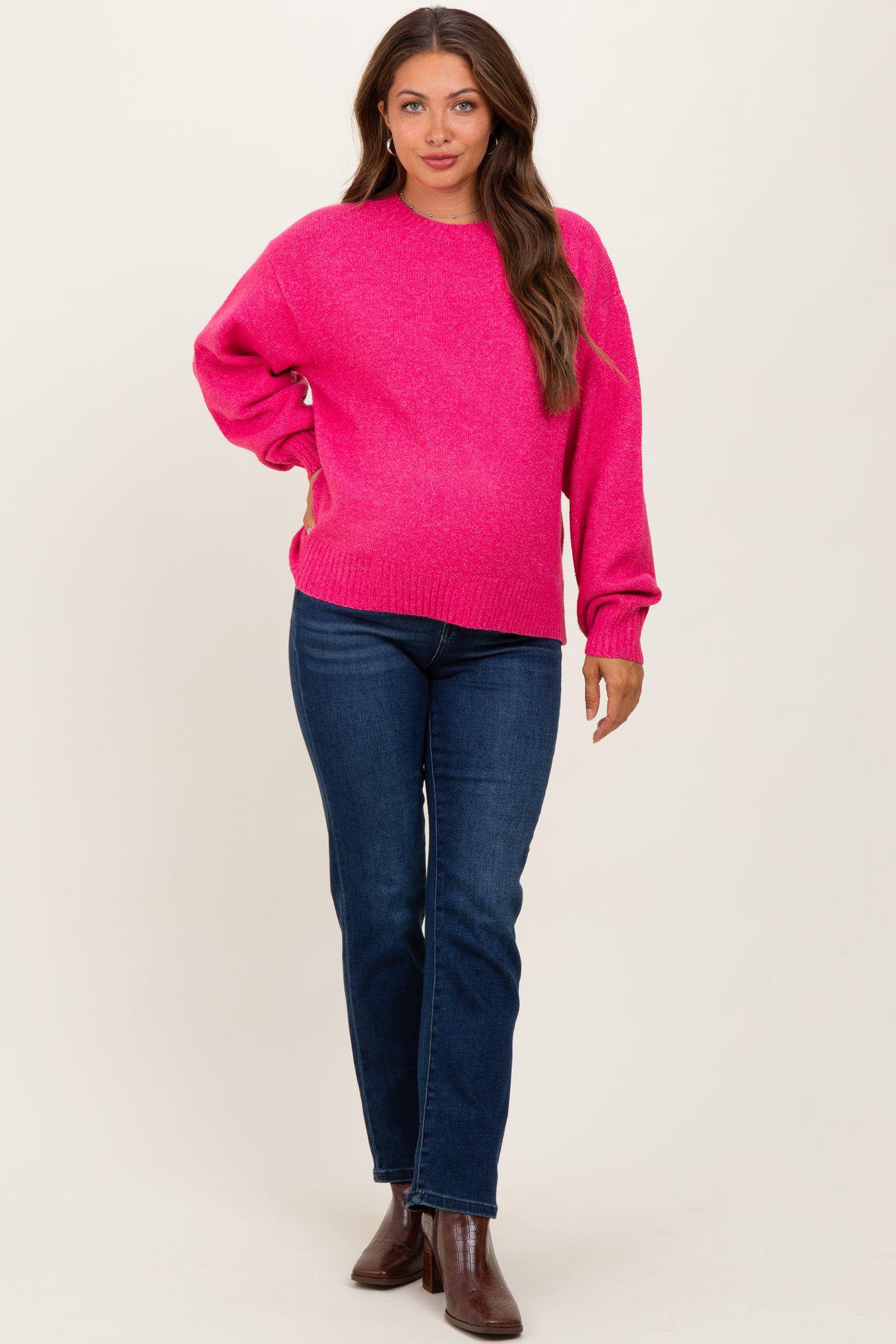 Fuchsia Chunky Knit Oversized Maternity Sweater