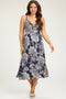 A printed maternity maxi dress with a v-neckline with cuout detail on chest, adjustable straps, and smocked back.