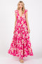 Fuchsia Floral Deep V-Neck Open Back Maternity Maxi Dress
