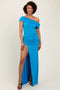 Fuchsia Foldover Off Shoulder Ruched High Slit Maxi Dress