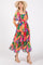 Fuchsia Leaf Print Side Cutout Tiered Midi Dress