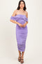 Fuchsia Off Shoulder Draped Ruched Midi Dress