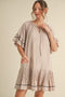 Fuchsia Print 3/4 Balloon Sleeve Dress