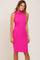 Fuchsia Ribbed Mock Neck Ruched Sides Dress